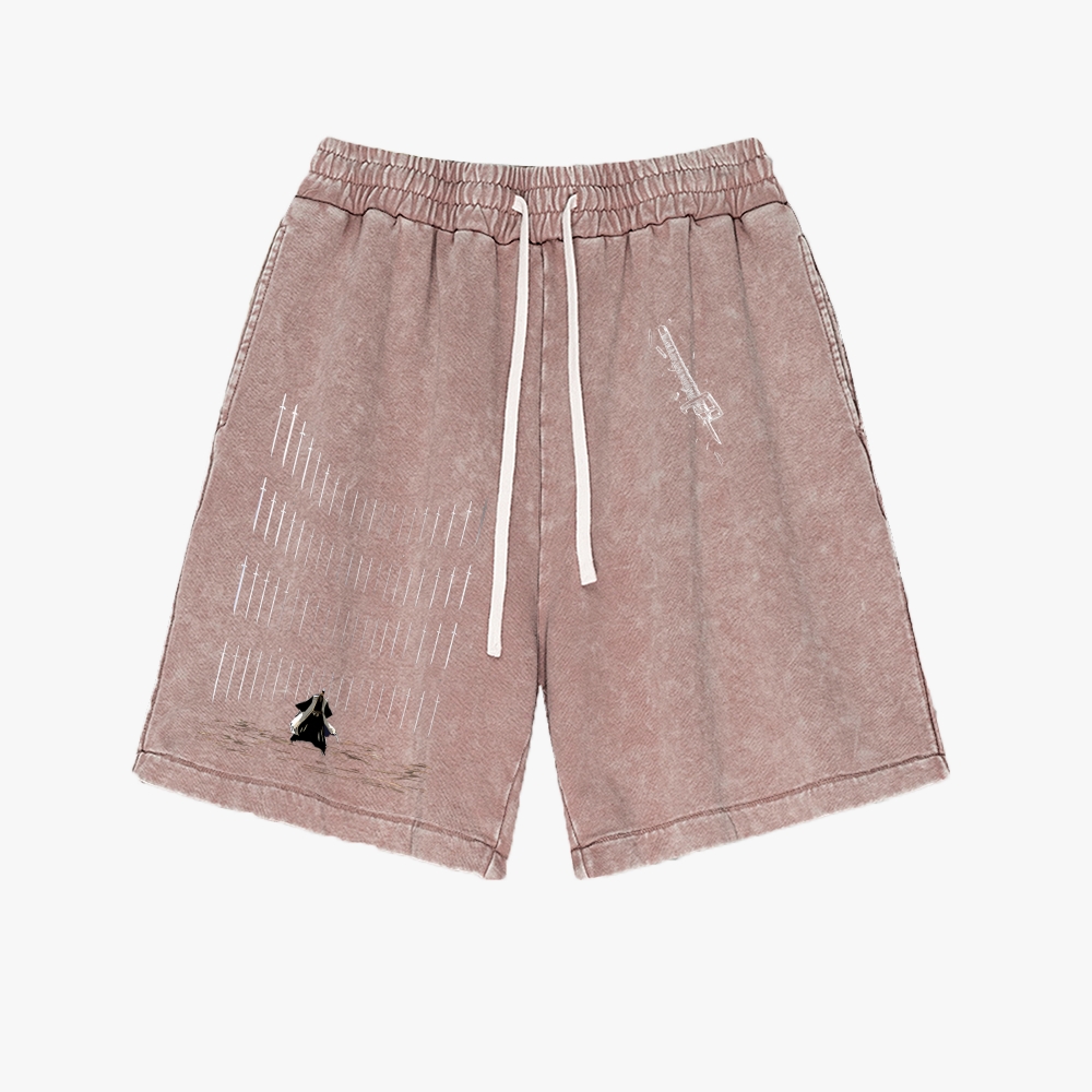 Bleach Anime Pattern Washed Vintage Shorts