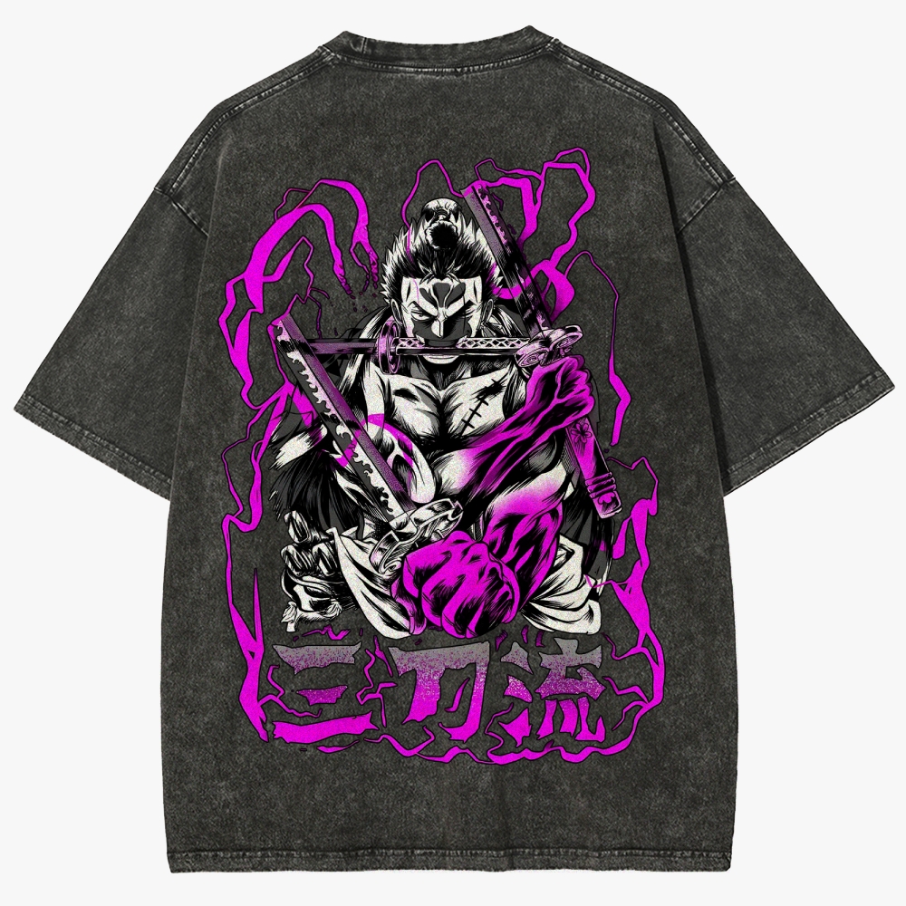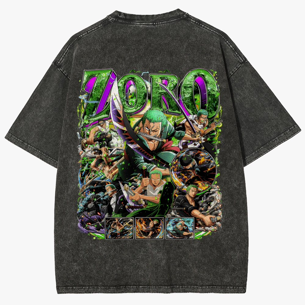 One Piece Pirate Hunter Zoro Retro Unisex Fit Washed T-Shirt