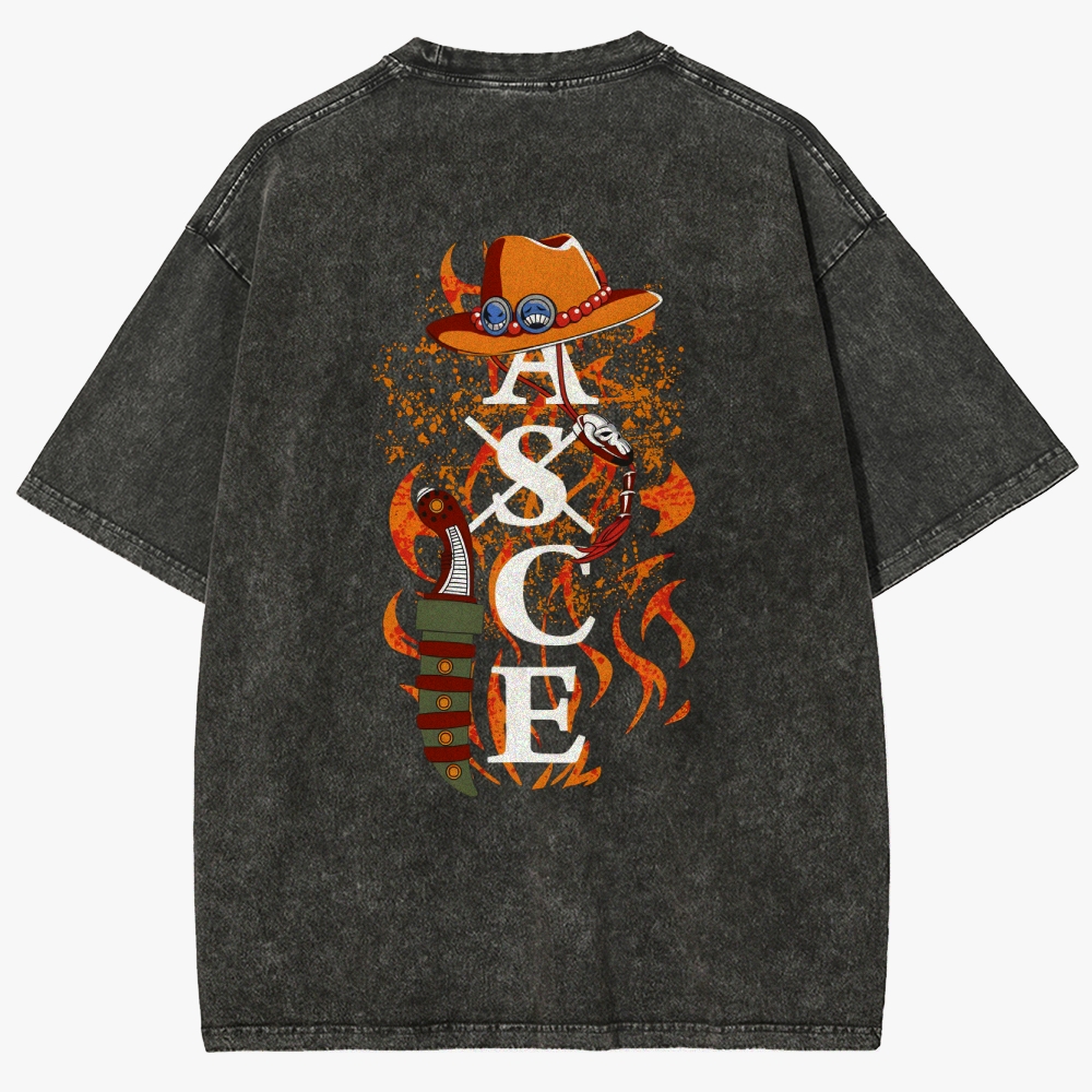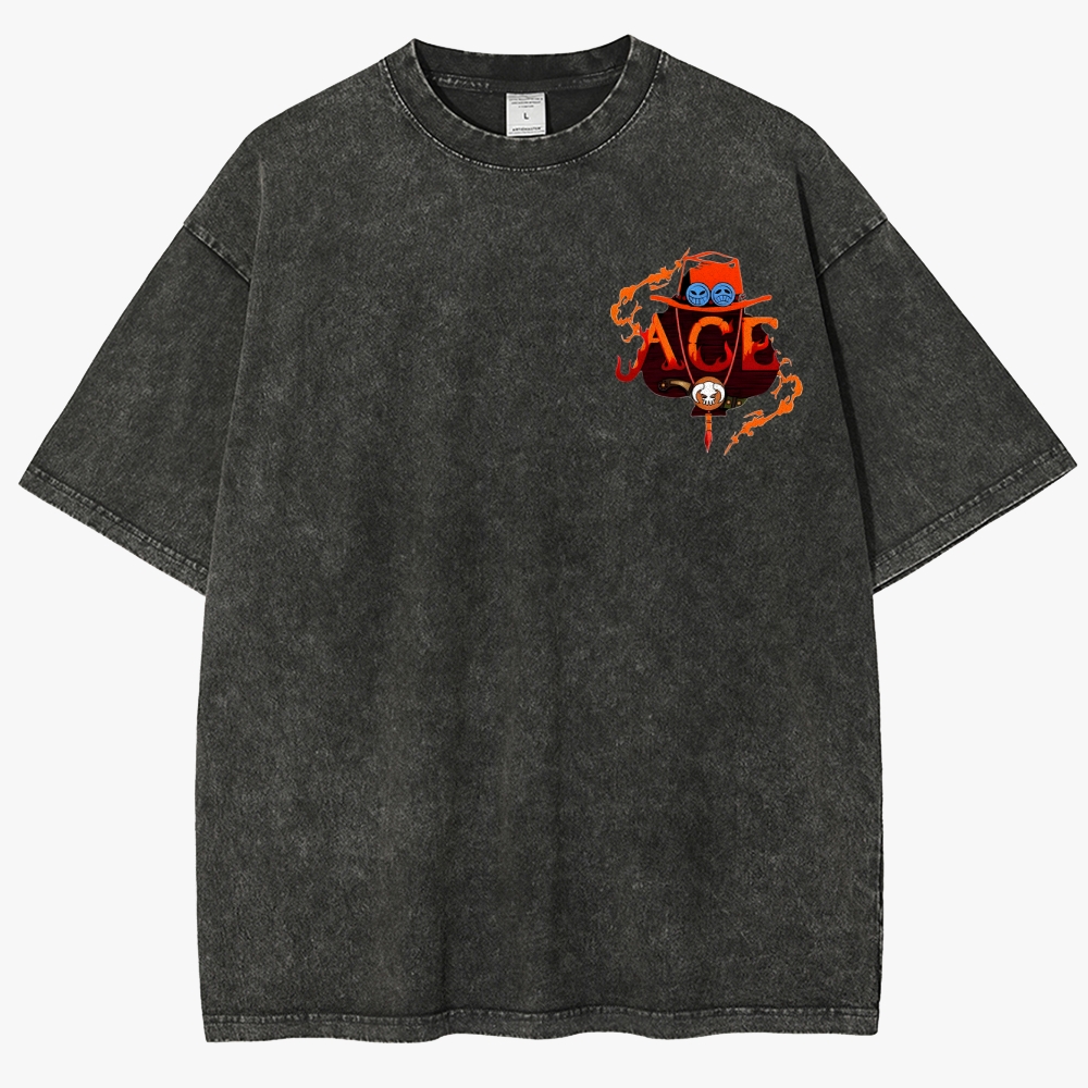 One Piece Fire Fist Ace 2-Sided Unisex Fit Washed T-Shirt