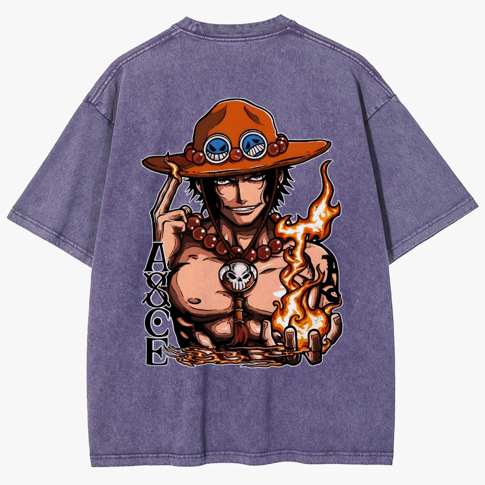 One Piece Fire Fist Ace 2-Sided Unisex Fit Washed T-Shirt